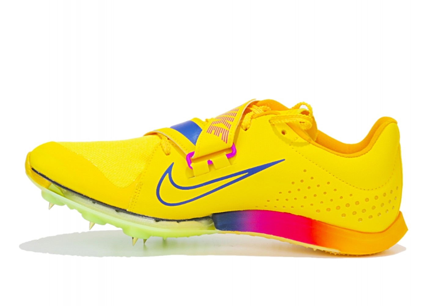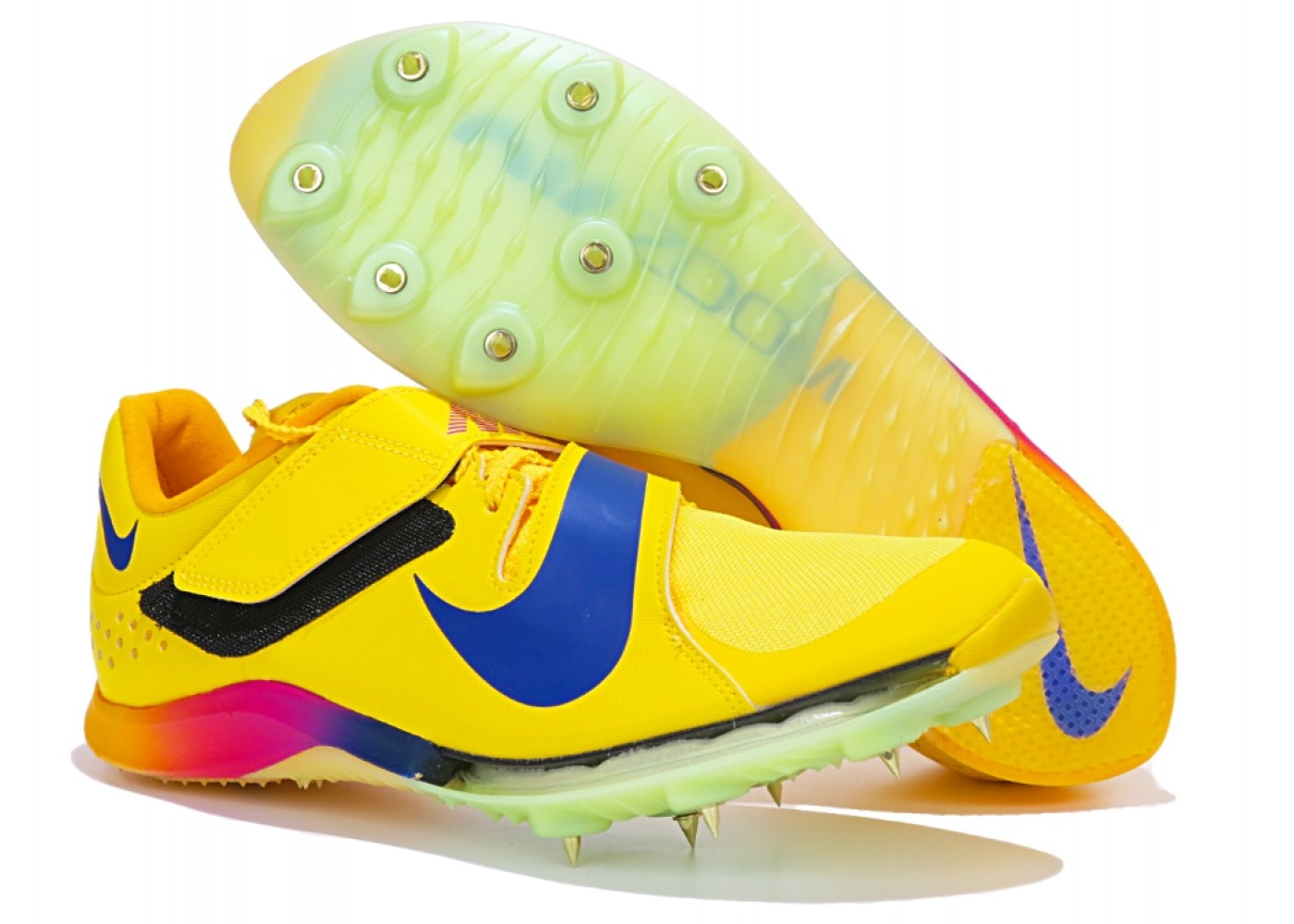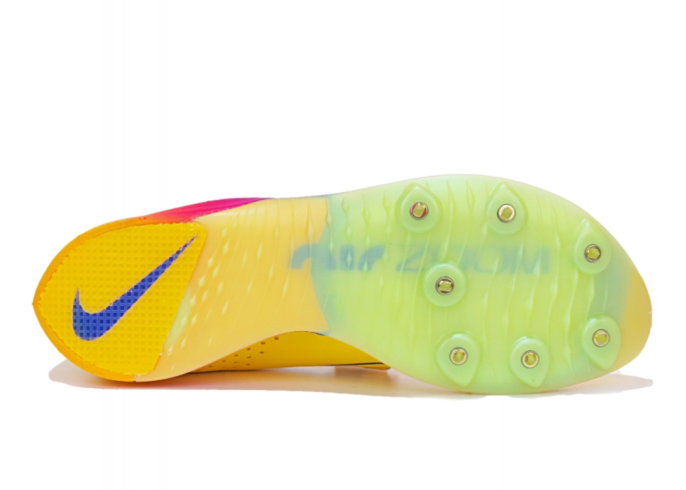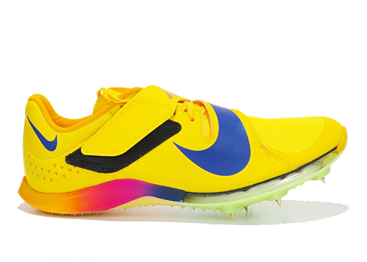 Сверхлегкие шиповки для прыжка в длину Nike Air Zoom Long Jump Elite. Подушка Zoom AIR в передней части стопы дает необходимую упругость при отталкивании. Более широкая конструкция и пластина из углеволокна(карбона) на всю длину подошвы дает повышенную упругость и стабилизацию при отталкивании. Подметка с рисунком, напоминающая волну и семью съемными гвоздями обеспечивает сцепление. Рисунок в области пятки, напоминающий кожу акулы, обеспечивает надежную фиксацию на разных поверхностях. Регулируемый х-образный ремешок надежно фиксирует стопу. Продуманная конструкция позволяет быстро надевать и снимать модель, регулировать посадку между прыжками. Съемные гвозди в комплекте.